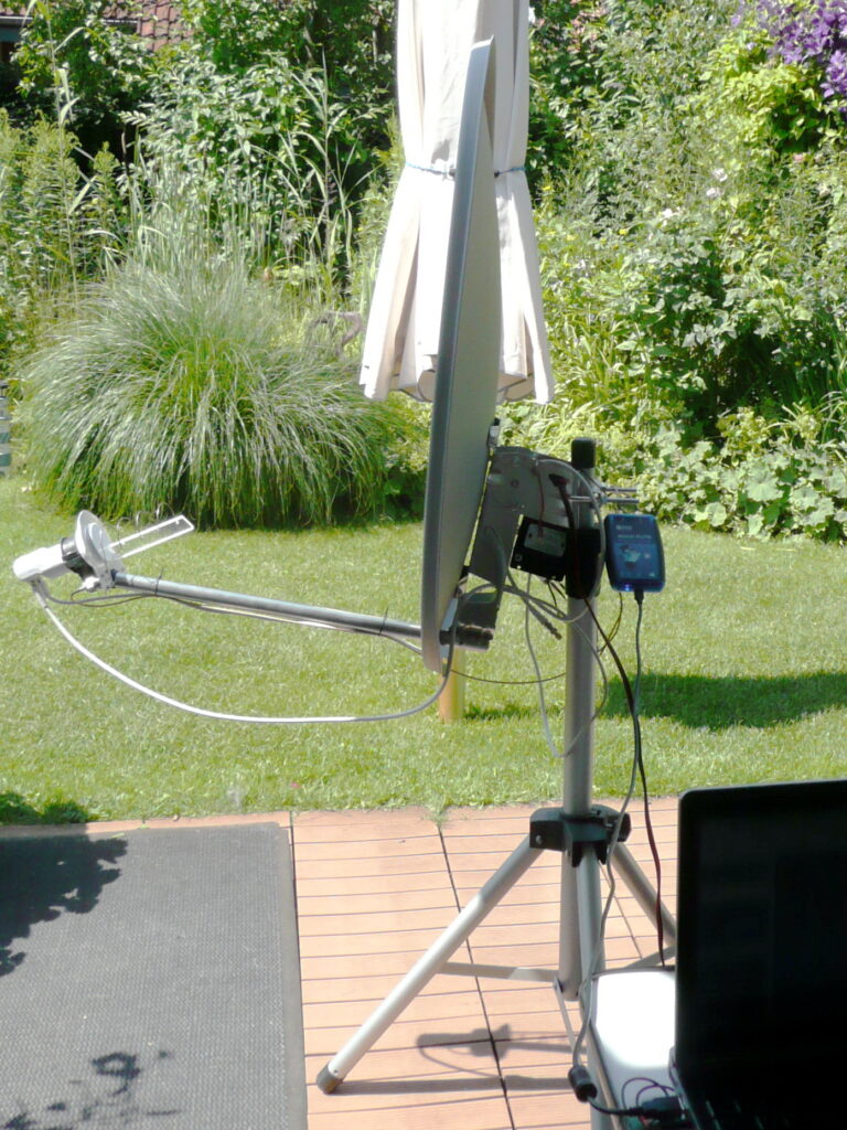 So ist es uns möglich, aus handelsüblichen, aber auch selbst entwickelten Teilen, eine Bodenstation für den Amateurfunk über einen geostationären Amateurfunksatelliten zu entwerfen und aufzubauen und damit Kontakt zu anderen Funkamateuren im Sichtbereich des Satelliten aufzunehmen. (z.B. auf der Georg-Neumeyer-Station in der Ankarktis). Wie so eine Station aufgebaut wird, könnt ihr auf meiner Website https://www.dk7ac.de/QO-100/qo-100.htm nachlesen, dort findet ihr eine ausführliche Baubeschreibung.
